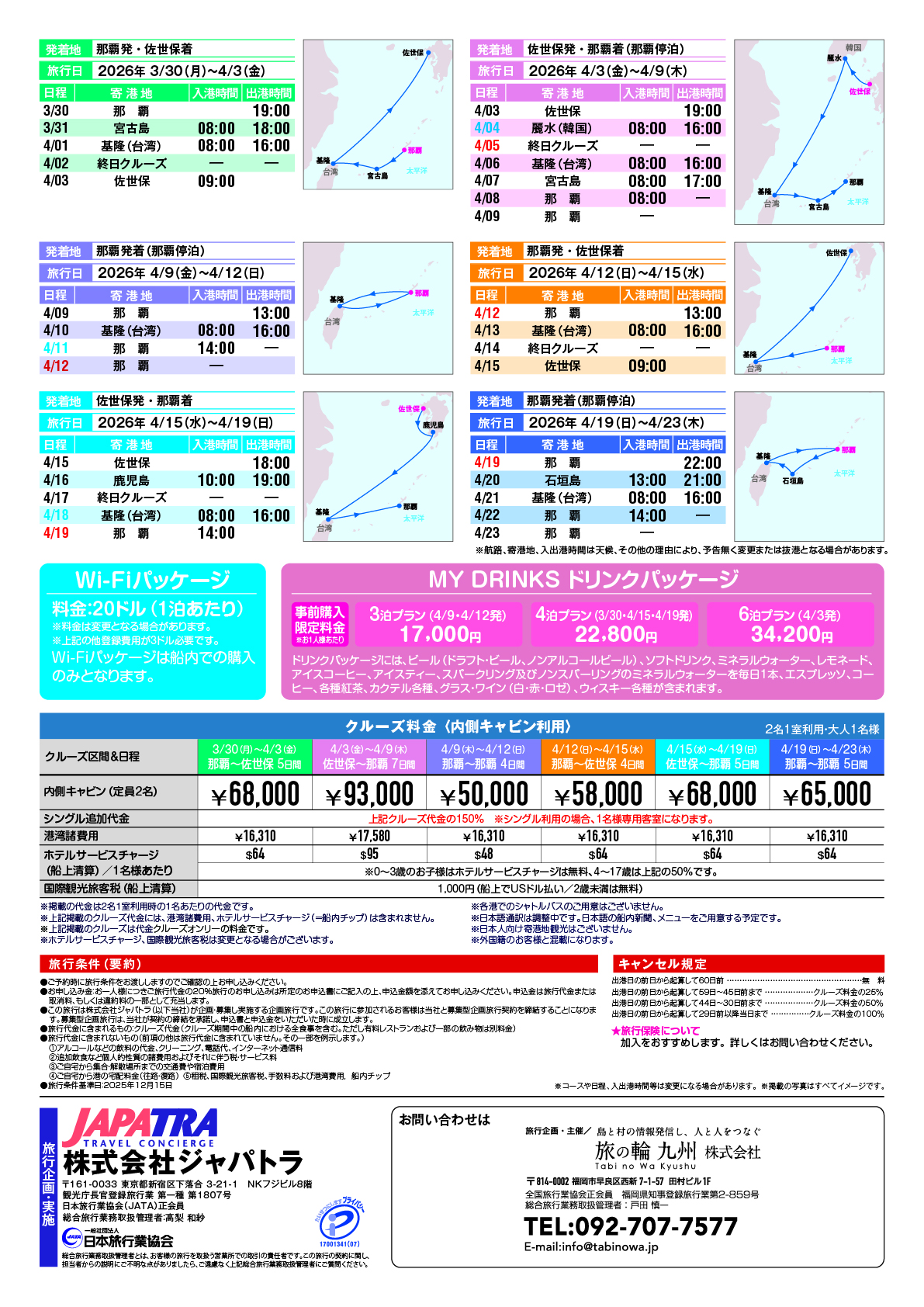 那覇を出発し、宮古島・奄美・佐世保・鹿児島・石垣島など、