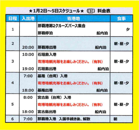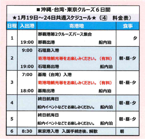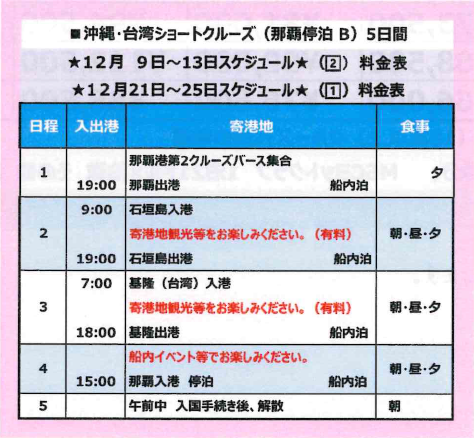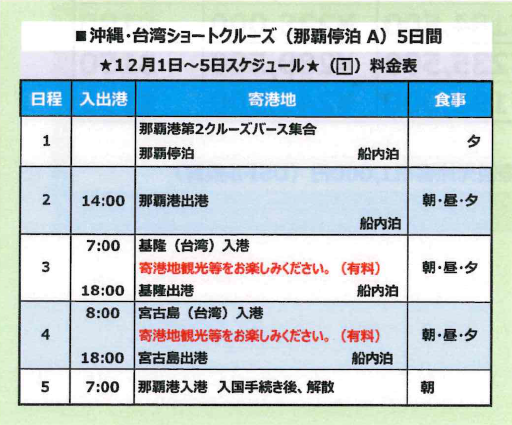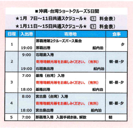 全プランとも 那覇港発着/5日間のショートクルーズ