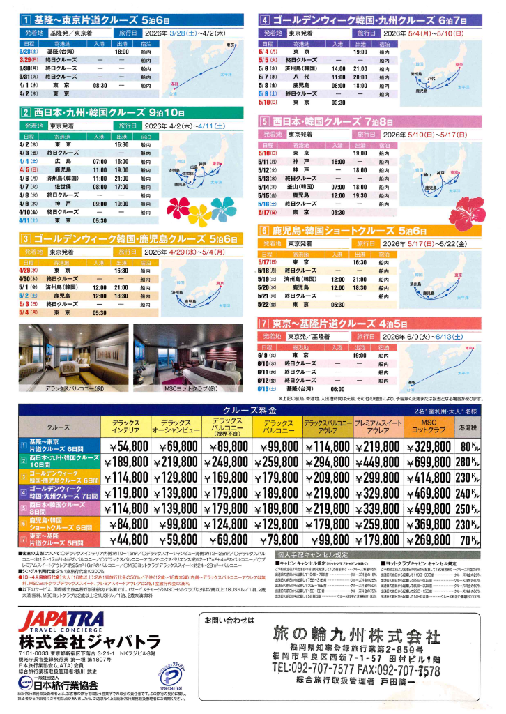 【東京発/基隆発】MSCベリッシマで航く!2026年日本発着クルーズの旅
