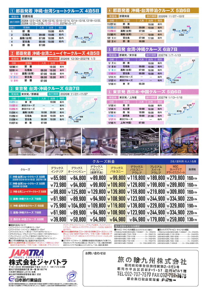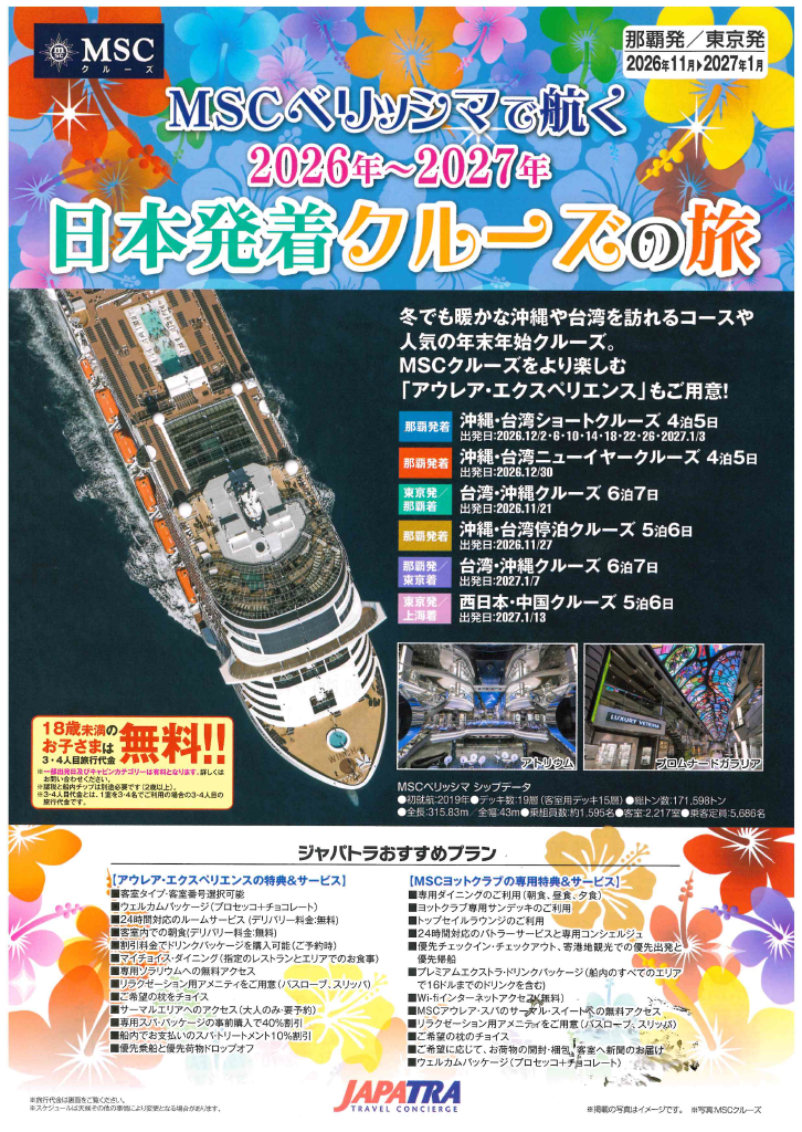 【那覇発/東京発】MSCベリッシマで航く!2026年~2027年 日本発着クルーズの旅